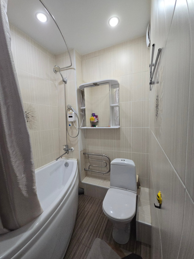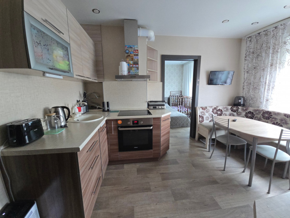 По планировке в кухня соединяется с комнатой, отдельная комната. Совмещенный санузел.